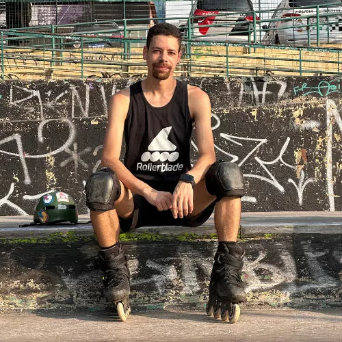 Além disso, atuo como embaixador da marca Rollerblade, promovendo o uso de patins de alta qualidade e equipamentos de segurança.